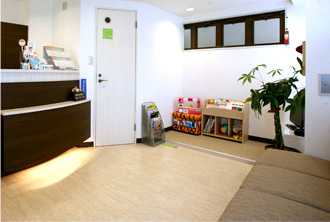 お待ちの間に自由に遊んでいただけるよう、おもちゃを多数ご用意したキッズスペースです。お子様向けのDVDも見ていただけます。