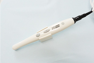 先端に小型カメラが付いており、お口の中を撮影するカメラです。見えづらい奥歯まで撮影することができます。