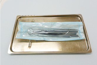 歯科用ミラーやピンセットなどをはじめ、診療に使用する器具を滅菌器に入れる前にこのような袋に入れます。